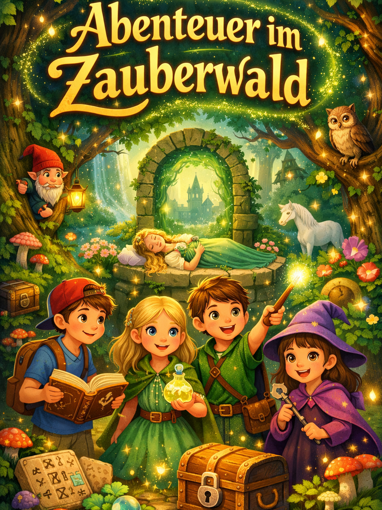 Die Prinzessin ist vergiftet worden. Ein Heilmittel ist im Zauberwald zu finden. Macht euch auf den Weg in den geheimnisvollen Zauberwald und rettet die Prinzessin. Aber der Wald wäre kein Zauberwald, wenn nicht hier viele Hindernisse auf euch warten würden. Löst gemeinsam die geheimnisvollen Rätsel und vertraut auf die Macht eurer Magie. Und keine Angst: Immer wieder trefft ihr auf freundliche Waldbewohner, die euch beim Lösen der Aufgaben helfen. Und dann ist da ja auch noch die weise Eule (euer Spielleiter). Freut euch auf 11 spannende und magische Rätsel - und ganz viel Spaß.